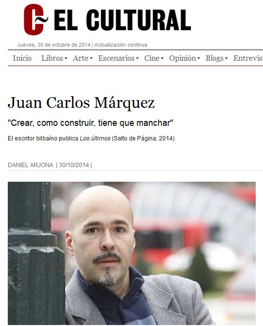 Juan Carlos Márquez presenta en Bilbao el viernes 24 de octubre su novela 'Los últimos'. Será a las 19.30 h en la librería Tintas (Alameda de San Mamés 40). Acompañarán al autor el escritor Jon Bilbao y el editor, Pablo Mazo,