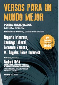 La Asociación Artística Vizcaína ofrece en Bilbao el recital de poesía 'Versos para un mundo mejor'. El viernes 17 de octubre, a las 19,30 horas en la Biblioteca Bidebarrieta.
