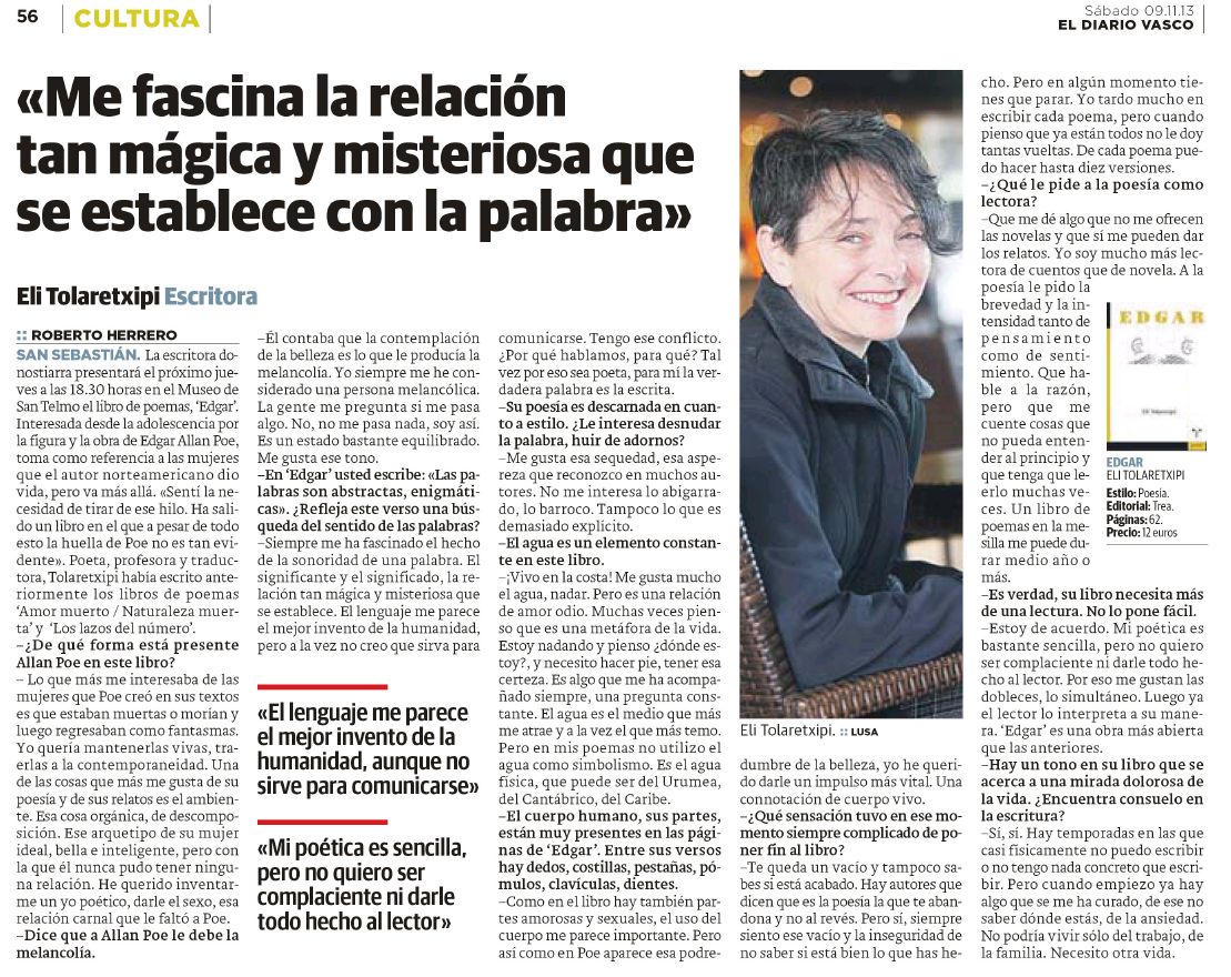 El periódico El Diario Vasco ha publicado una entrevista con la autora donostiarra con motivo de su reciente publicación.