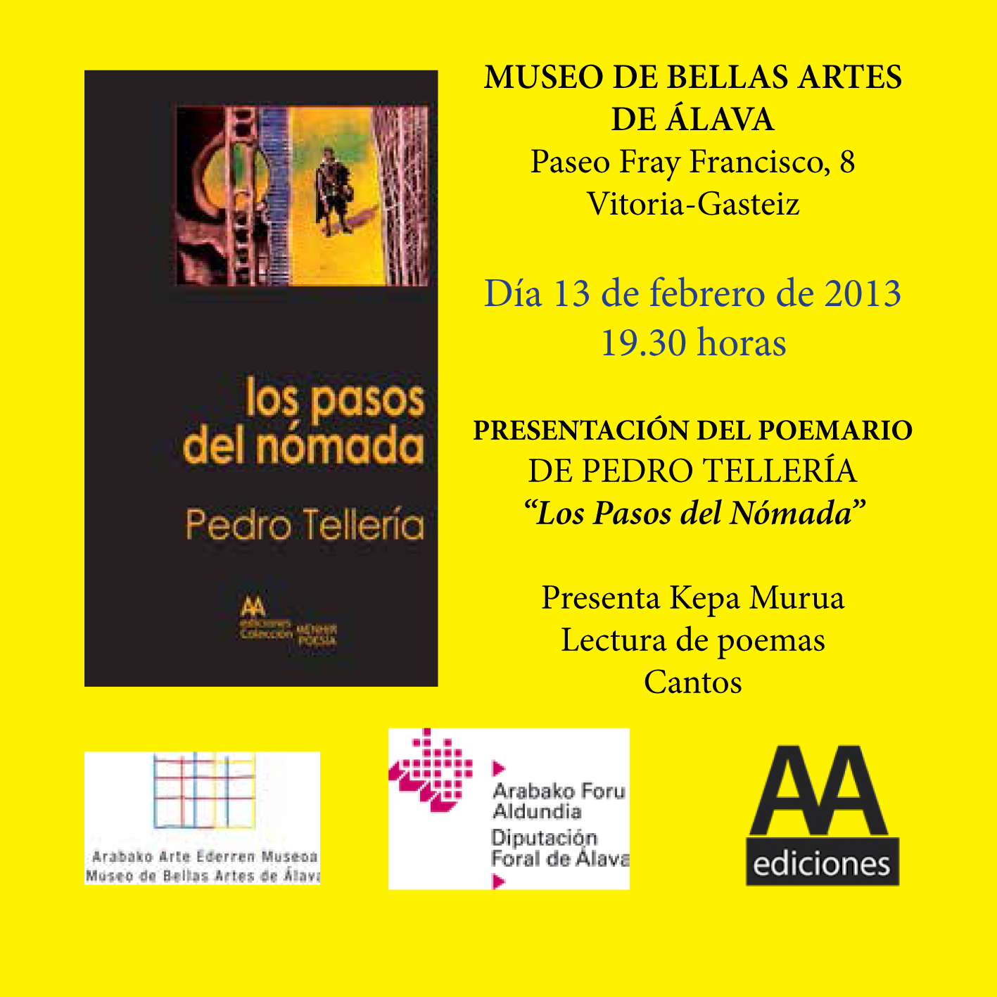 La próxima semana también se presenta intersante, sobre todo a nivel poético. 'Palabras al vuelo', es un programa poético que recorrerá desde el 12 al 17 de febrero diferentes aristas o matices del lenguaje poético. El evento está organizado por el aula de Cultura Koldo Mitxelena. A lo largo de esos días, se espera la presencia del poeta navarro Javier Irazoki, concretamente el 14 y el 15, y también de Asier Serrano, Mariluz Secilla, Castillo Suárez, José Blanco y Luis García Montero. Otro punto interesante a apuntar en nuestras respectivas agendas es la presentación del nuevo poemario de Pedro Tellería. Será el 13 de febrero en Vitoria. El también poeta Kepa Murua hará las veces de introductor de 'Los pasos del nómada' en el museo de Bellas Artes de la capital vasca. El evento, en el que también se recitarán poemas de la nueva obra comenzará a las 19:30 horas.