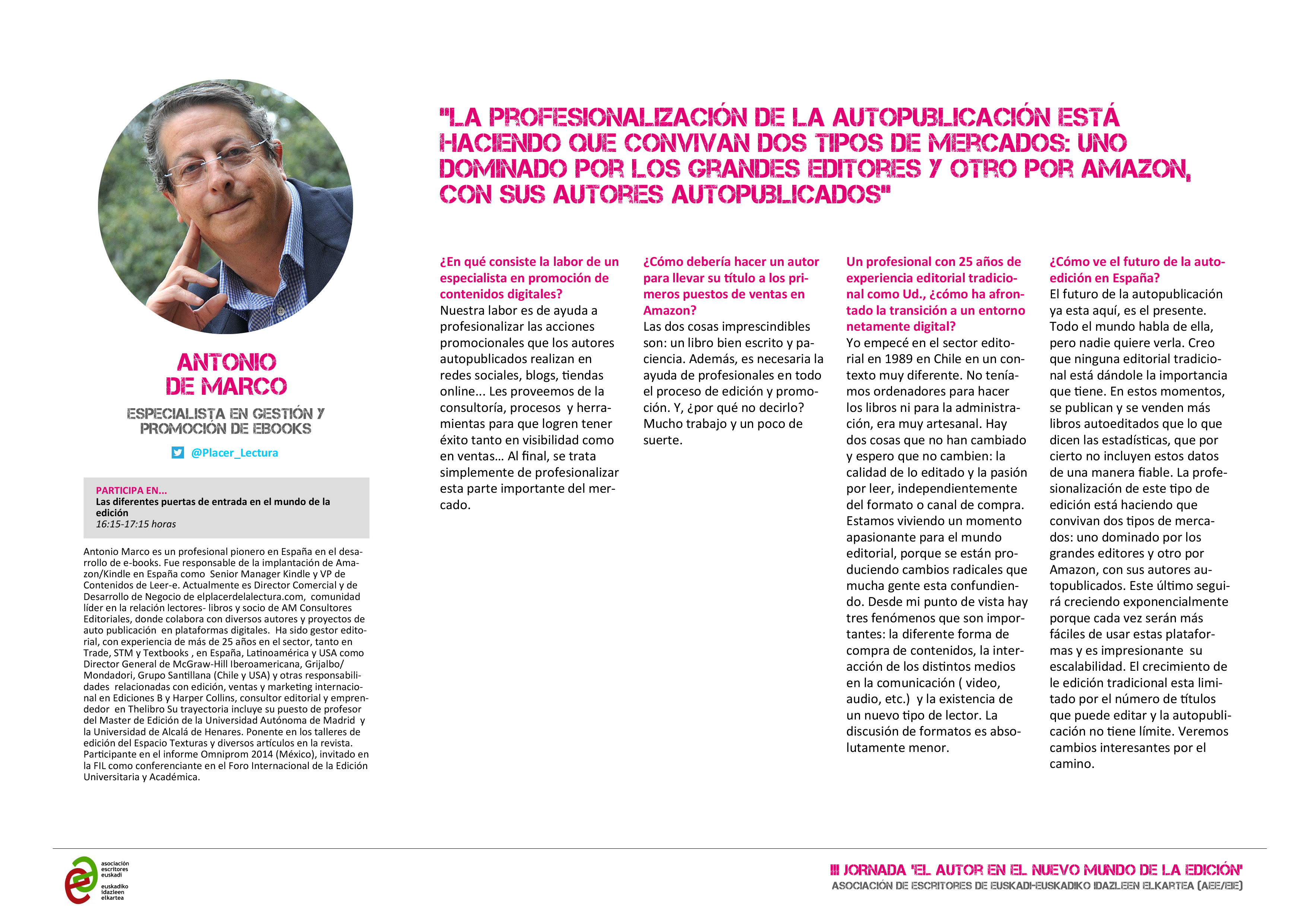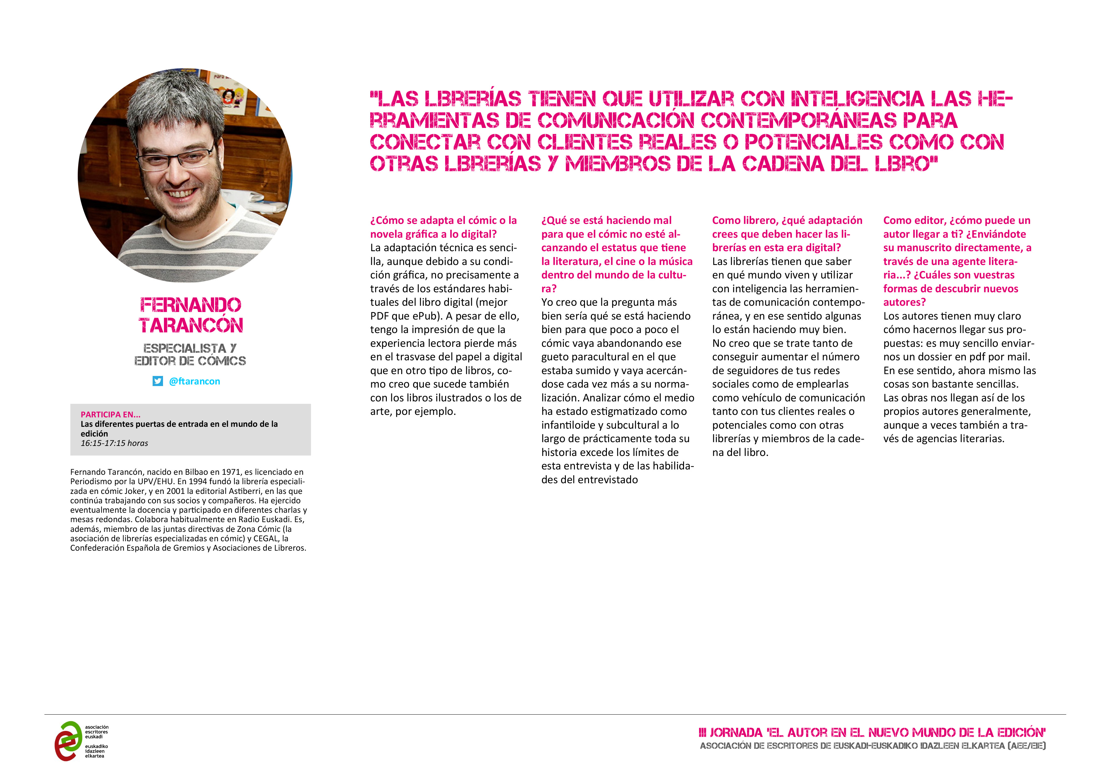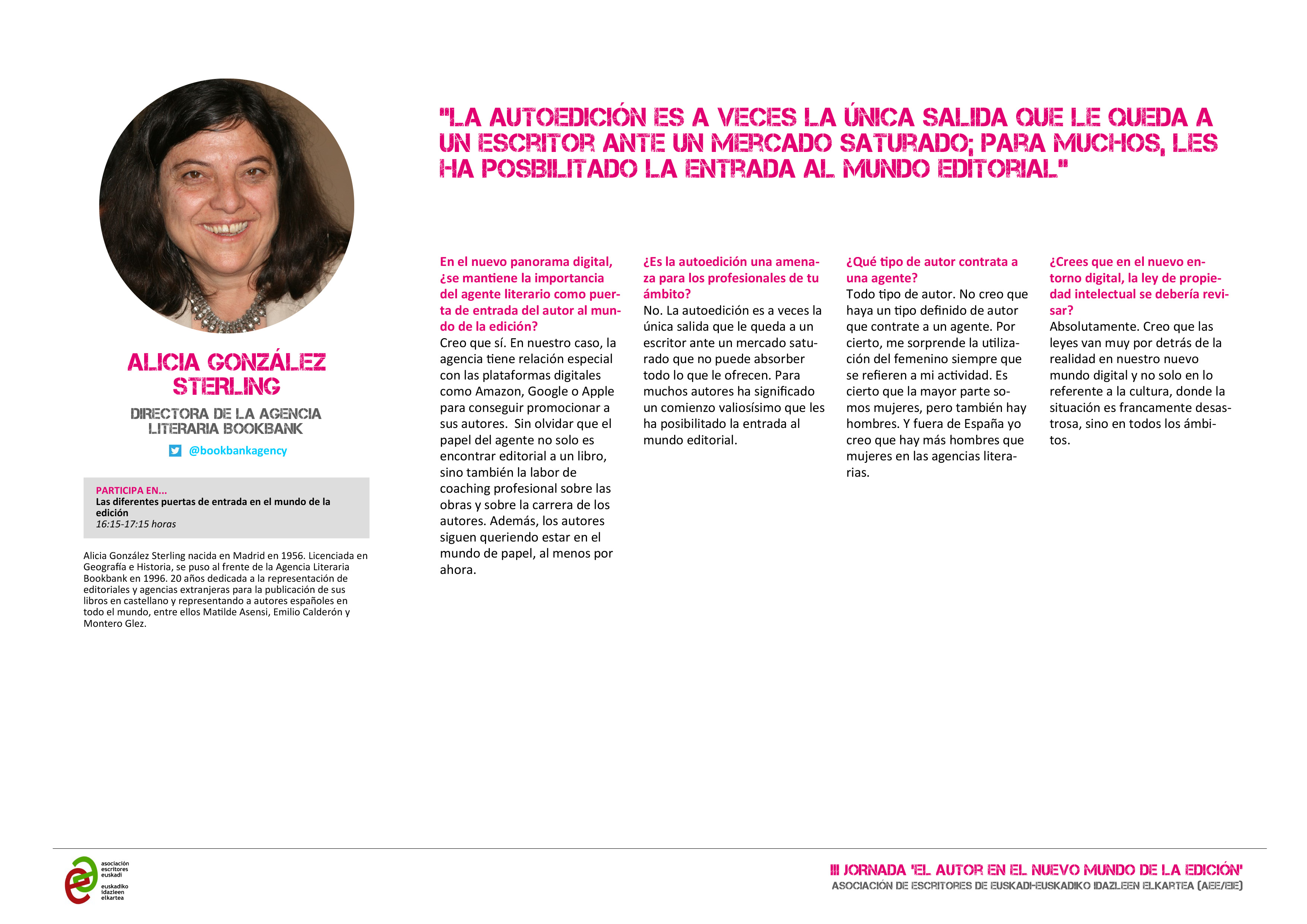 Tenemos el placer de presentar a los ponentes de la III Jornada 'El autor en el nuevo mundo de la edición' que se celebrará el 16 de septiembre en Azkuna Zentroa- La Alhóndiga de Bilbao.