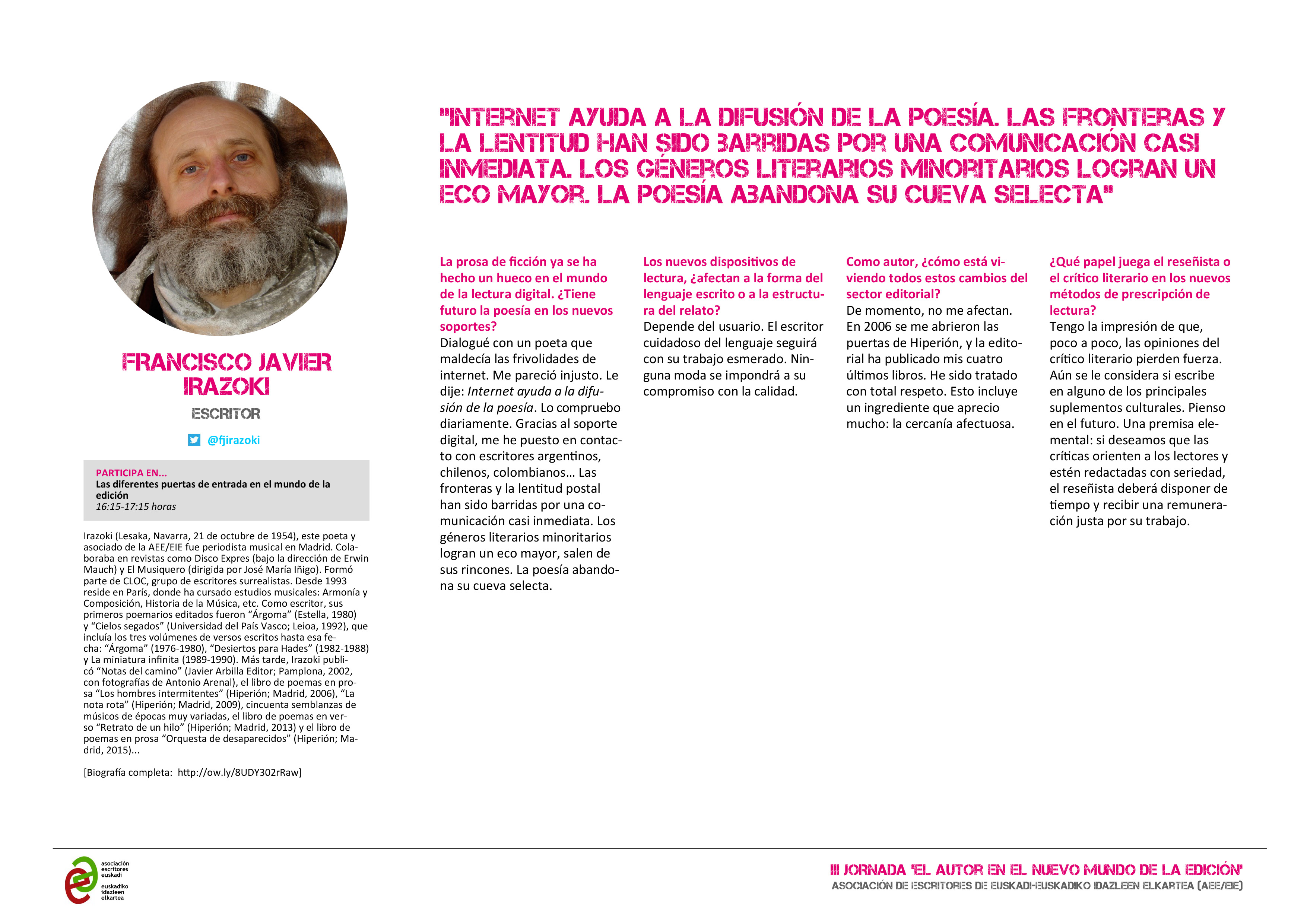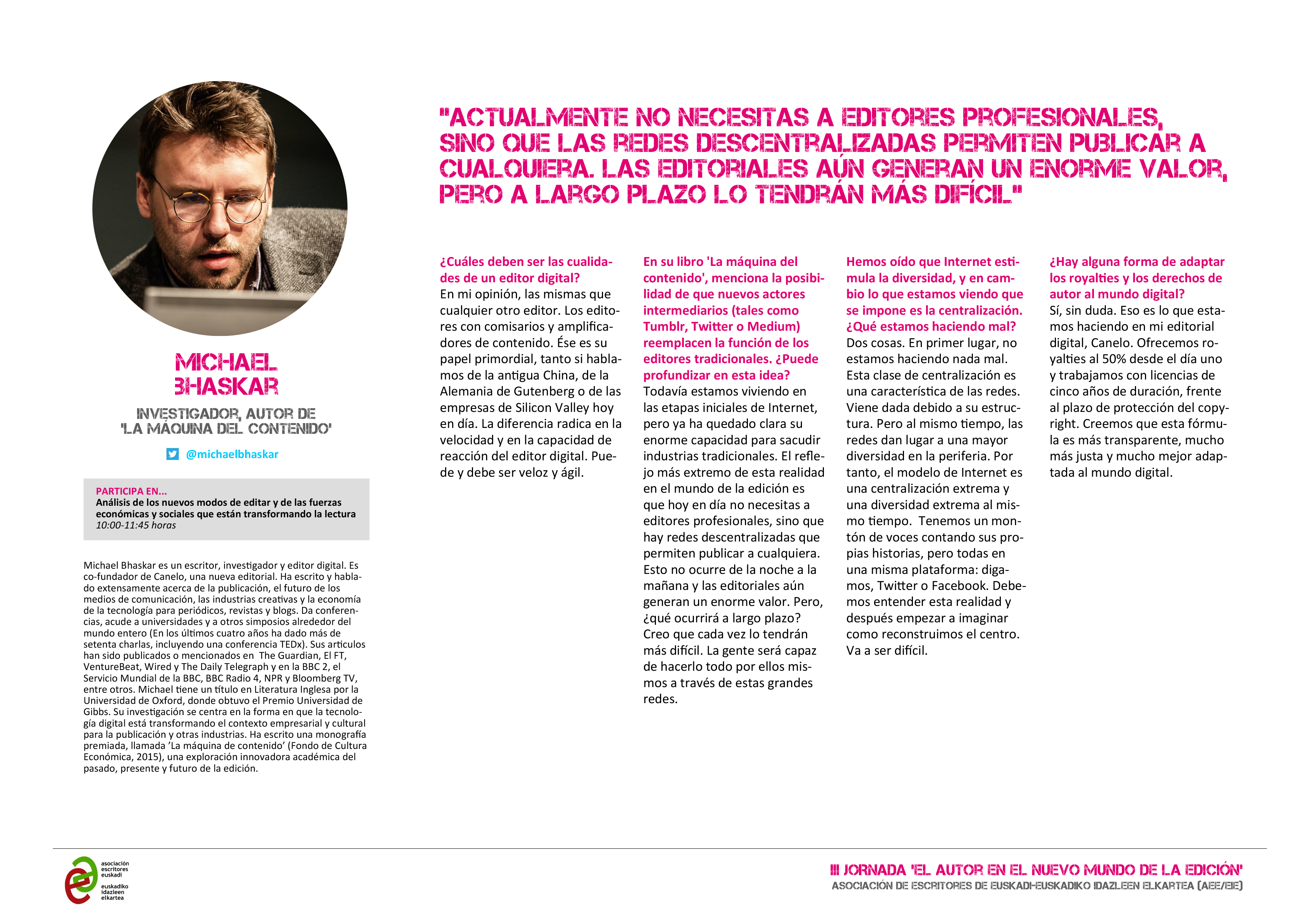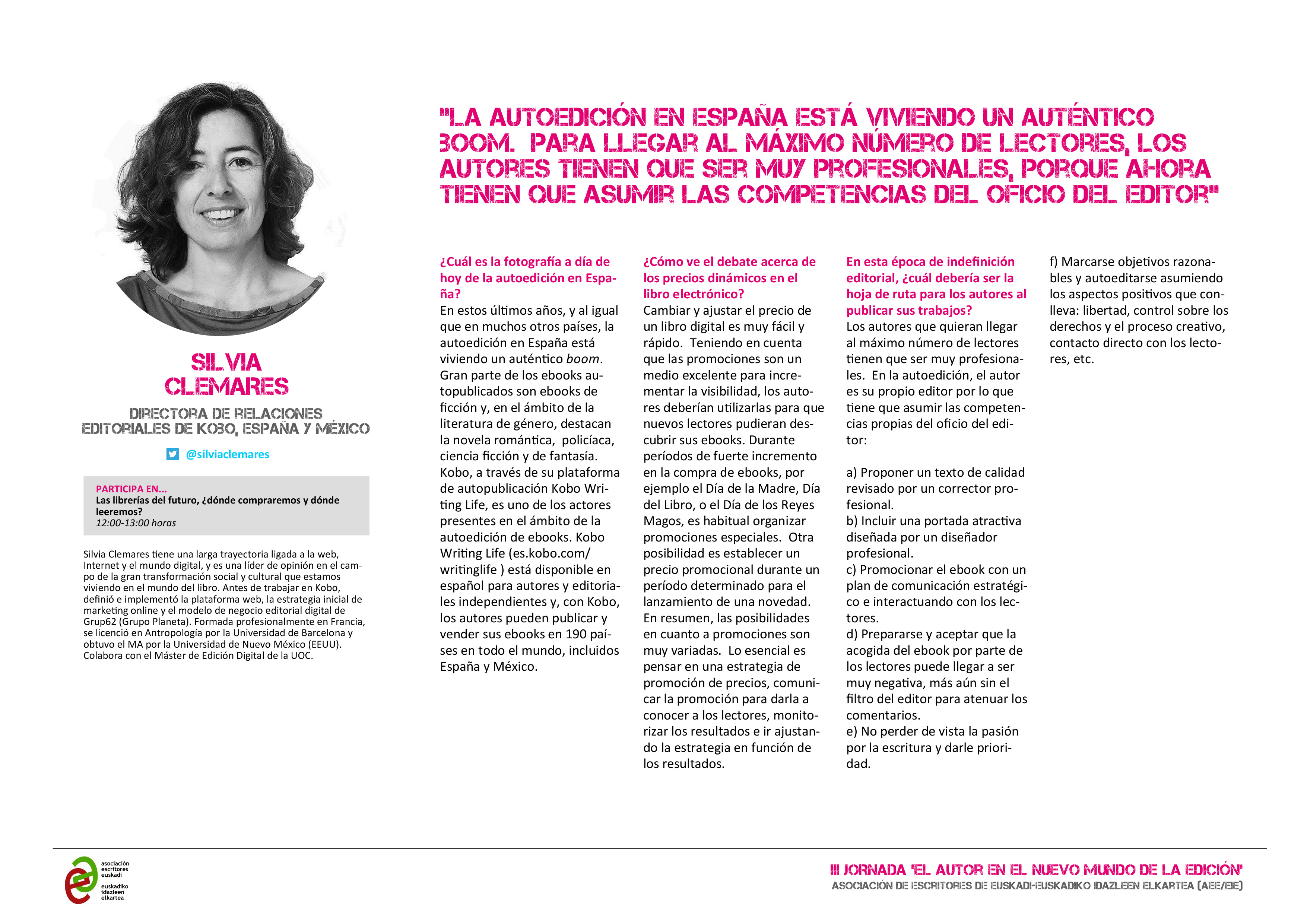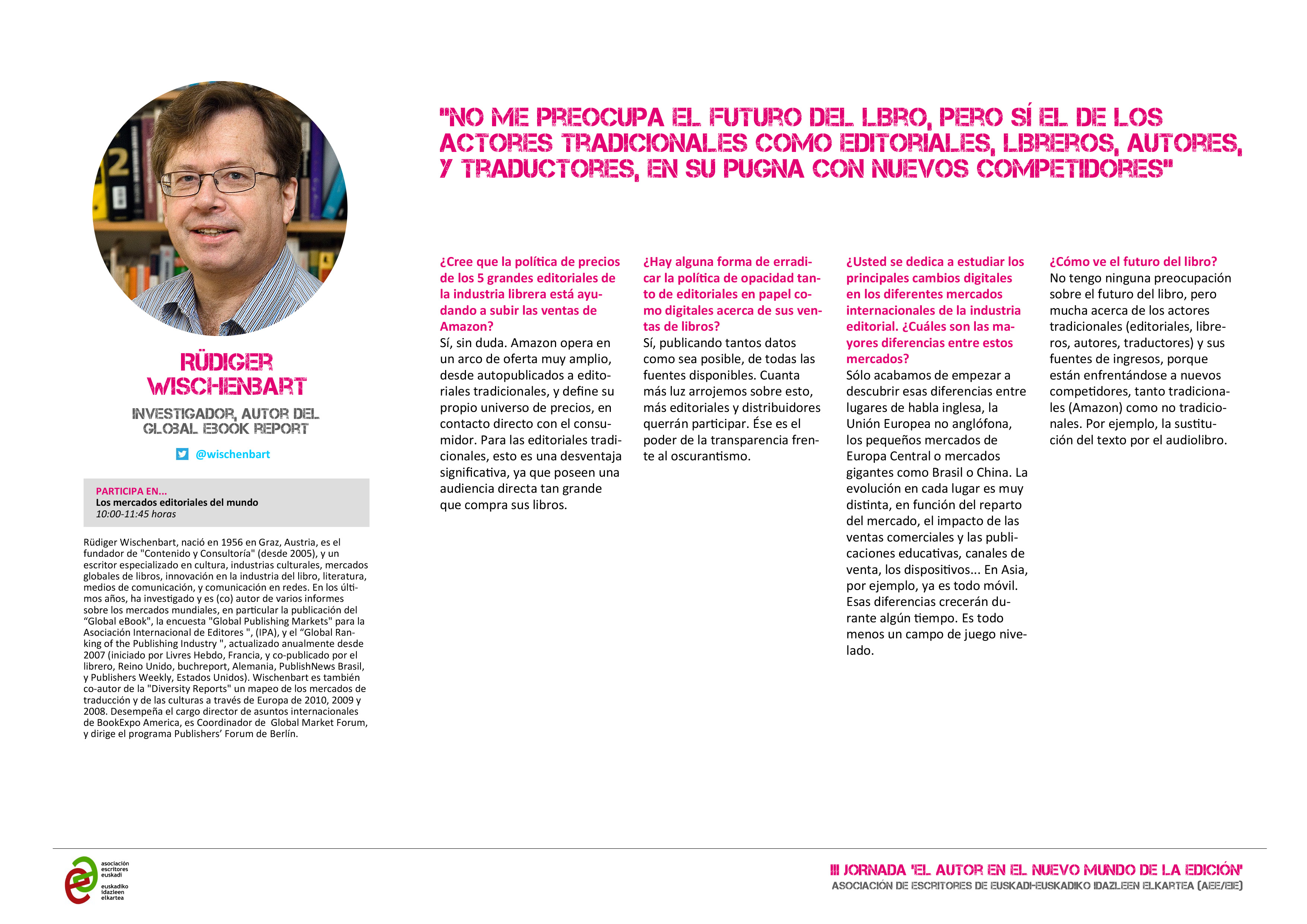 Tenemos el placer de presentar a los ponentes de la III Jornada 'El autor en el nuevo mundo de la edición' que se celebrará el 16 de septiembre en Azkuna Zentroa- La Alhóndiga de Bilbao.