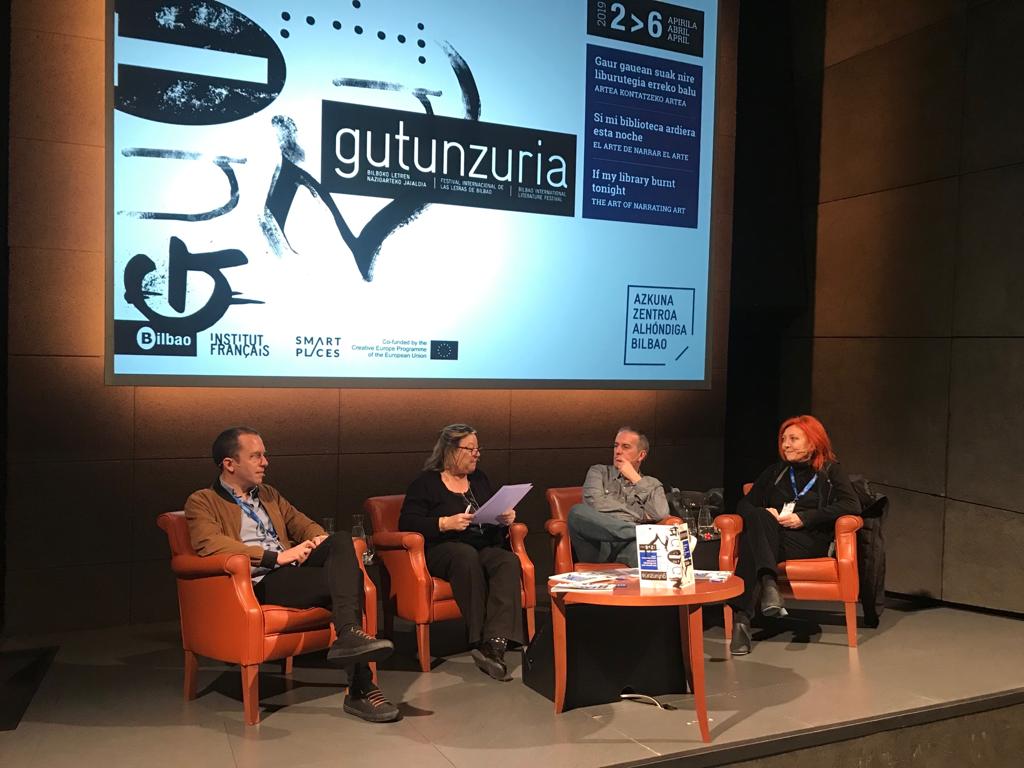 El pasado 3 de abril la AEE/EIE participó en el Gutun Zuria 2019, Festival Internacional de las Letras de Bilbao, en un workshop que contó con la participación de Sheila Cremaschi, directora del Hay Festival of Literature and the Arts, Luis Posada, director del Festival Eñe de Madrid y Málaga y Ricard Robles, cofundador y codirectorde Advanced Music, la empresa organizadora del festival Sónar y del congreso Sónar+D. La mesa fue moderada por la presidenta de la AEE/EIE María Eugenia Salaverri, escritora, guionista y productora de cine, periodista y compositora.