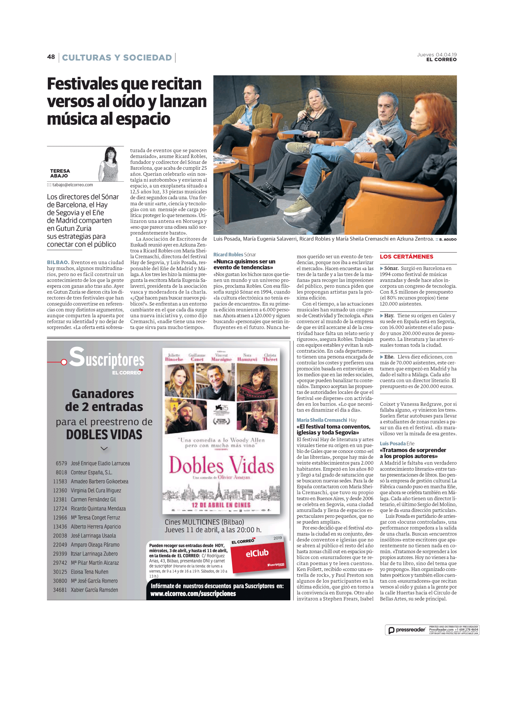 Agradecemos especialmente la crónica de este encuentro que Teresa Abajo ha recopilado en este completo artículo publicado en El Correo el 4 de abril de 2019: