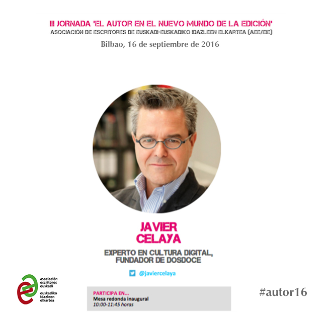 Por segundo año consecutivo el conferenciante, escritor, investigador y experto en tecnología y cultura Javier Celaya estará presente en la cita anual que organiza la Asociación de Escritores de Euskadi-Euskadiko Idazleen Elkartea en Bilbao. En esta ocasión, dirigirá la conversación entre dos de los referentes mundiales en lo que a la edición digital se refiere, Michael Bhaskar y Rüdiger Wischenbart, el próximo 16 de septiembre en Azkuna Zentroa-La Alhóndiga.