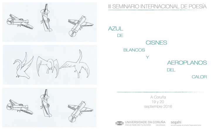 Los días 19 y 20 de septiembre de 2016 se celebrará en la Universidade da Coruña el III Seminario Internacional de Poesía: “Azul de cisnes blancos y aeroplanos del calor”, organizado por el grupo de investigación SEGAHI, Seminario Galego de Estudos Hispanoamericanos, dedicado a la poesía moderna y contemporánea. El título hace referencia a dos autores de la modernidad y la vanguardia: Rubén Darío y Vicente Huidobro.