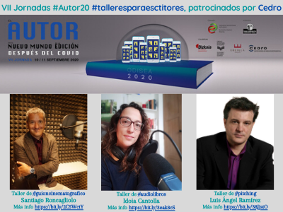 Santiago Roncagliolo, Idoia Cantolla y Luis Ángel Ramírez ofrecerán en las Jornadas #Autor20 tres talleres para escritores sobre adaptación de literatura a guion cinematográfico, audiolibros y podcasting y pitching, respectivamente.
