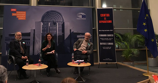 Fernando Savaterek Contra el separatismo (Ariel) bere azken liburua aurkeztu du gaur Europako Parlamentuan Raffaele Simone filosofo europarrarekin batera, azken hau Europeo 2017 liburuaren egilea, bai eta Maite Pagazaurtundúa UPyDko eurodiputatuarekin batera. Idazle eta filosofo donostiarra “Estaturik gabeko nazio gehiago eta naziorik gabeko Estatu gehiagoren” alde azaldu zen, eta Kataluniako krisialdi separatista bete betan plazaratu den bere obra “laguntza deiadar” bat izatea nahi duela dio.