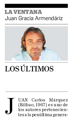 Juan Gracia Armendáriz idazleak Diario de Navarrako bere asteroko zutabean Juan Carlos Márquezen 'Los últimos' eleberriari buruzko erreseina idatzi du, besteak beste, agerian jarriz hau badela “irakurlea lepotik heltzen duen eleberria, planeta agoniko, absurdu eta kanibal baten barnako ibilbidera bultzatuz, non pop elementuak topatuko dituen, umorez jorratuak”.